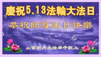 山西朔州大法弟子恭祝师尊华诞!同祝5.13世界法轮大法日!