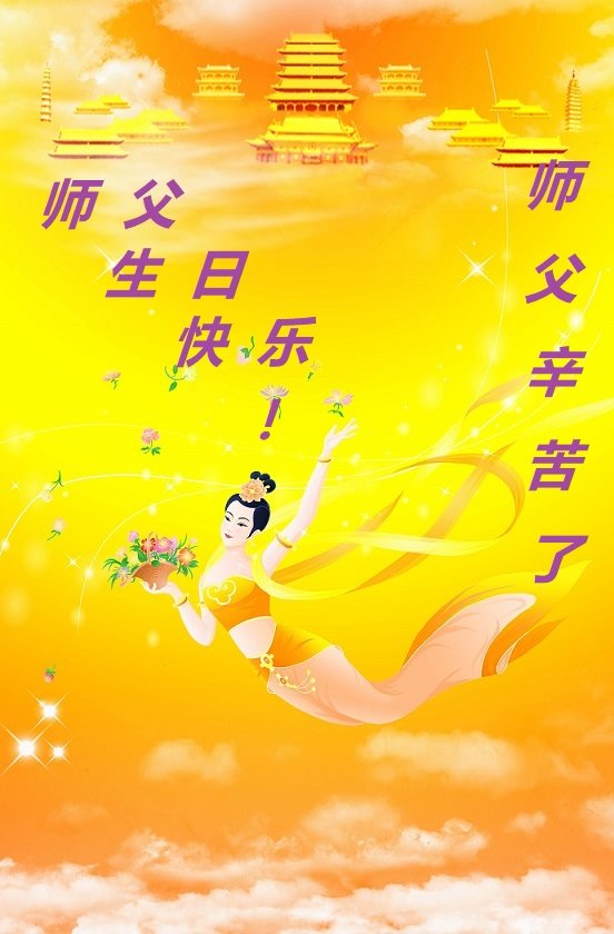 在这普天同庆的日子,弟子叩拜恩师生日快乐!恭祝世界法轮大法日,谢谢师父一路看护与救度。 师父辛苦了!再次谢谢师父!叩首 山西大同广灵县大法弟子敬上 山西大同广灵县一大法弟子恭祝师父生日快乐!恭贺世界法轮大法日!