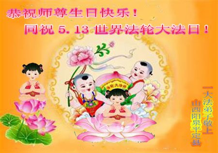 山西省阳泉市平定县大法弟子敬贺五·一三世界法轮大法日!祝愿慈悲伟大的师尊生日快乐!