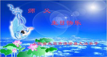山西省太原市清徐县全体大法弟子恭祝慈悲伟大的师尊生日快乐!