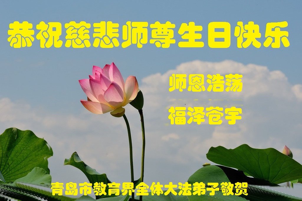 山东青岛市教育界全体大法弟子恭祝慈悲伟大师尊生日快乐!