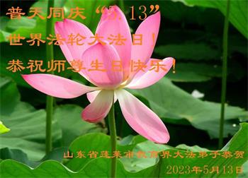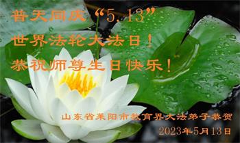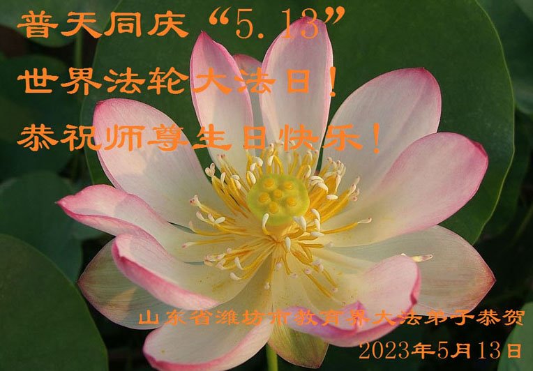 山东省潍坊市教育界大法弟子恭祝慈悲伟大的师尊生日快乐!恭祝世界法轮大法日!