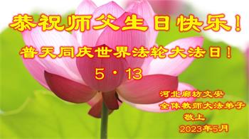 【明慧网二零二三年五月十一日】 黑龙江省教育界大法弟子恭祝师尊华诞暨法轮大法日!
