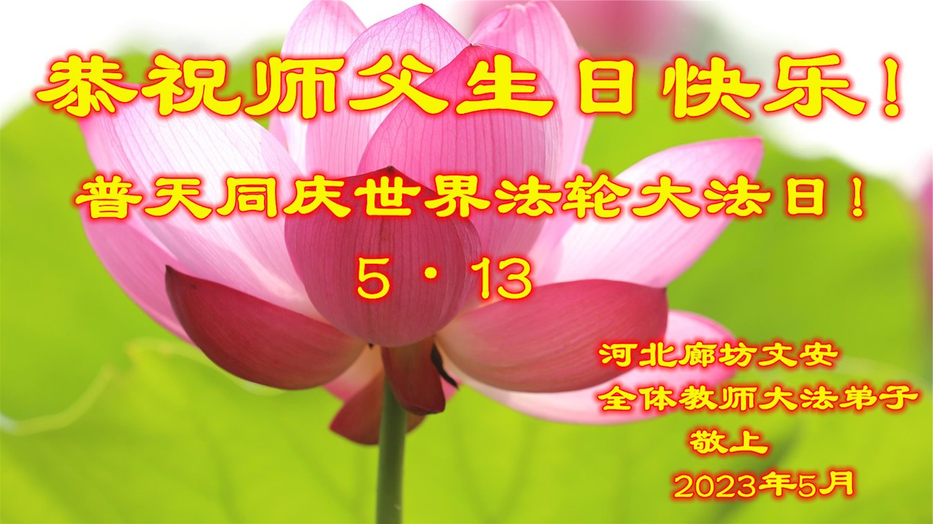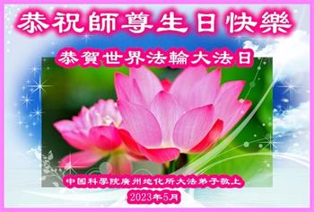 恭祝师尊生日快乐!普天同庆世界法轮大法日! 中国科学院广州地化所大法弟子敬上 2023年5月 黑龙江哈尔滨市教育界大法弟子恭祝师尊华诞暨法轮大法日!