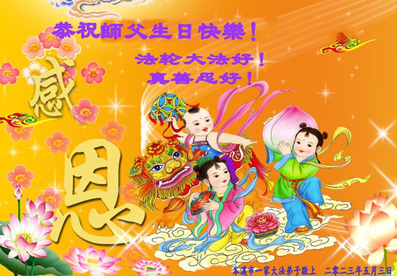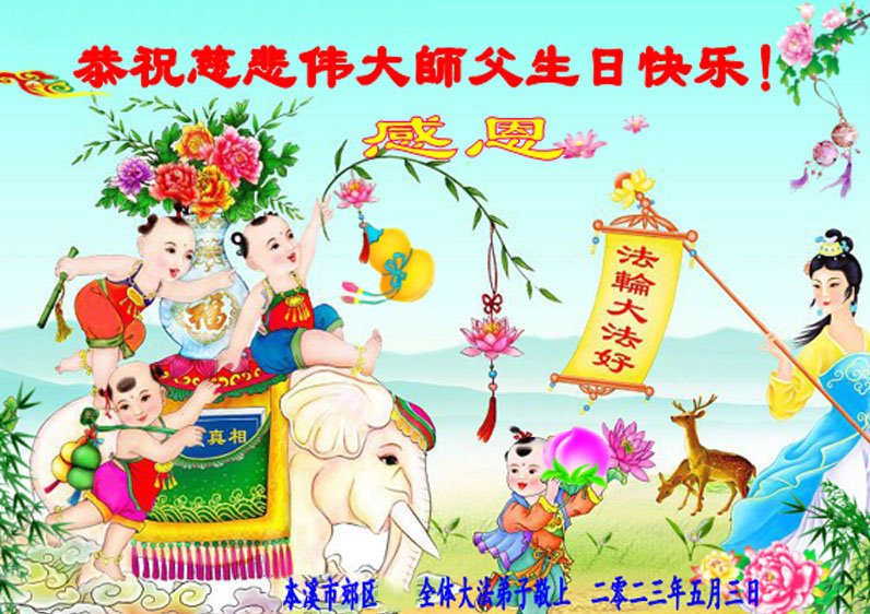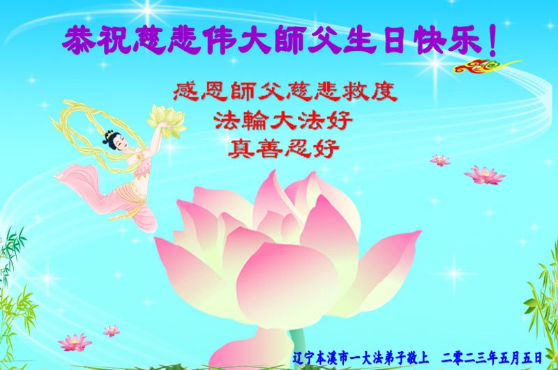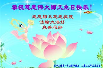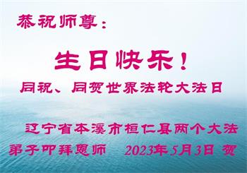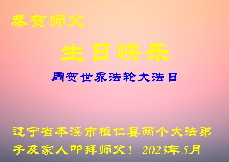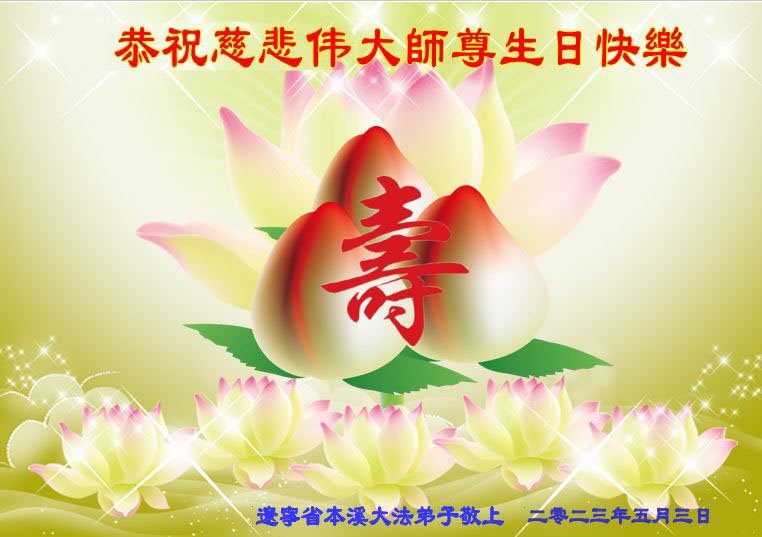 【明慧网二零二三年五月十一日】 辽宁省本溪郊区全体大法弟子恭祝慈悲伟大师父生日快乐!