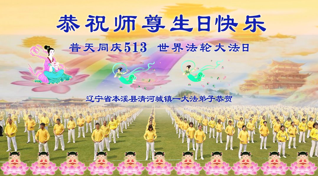 辽宁省本溪县清河城镇一大法弟子恭祝师尊生日快乐!庆祝世界法轮大法日!
