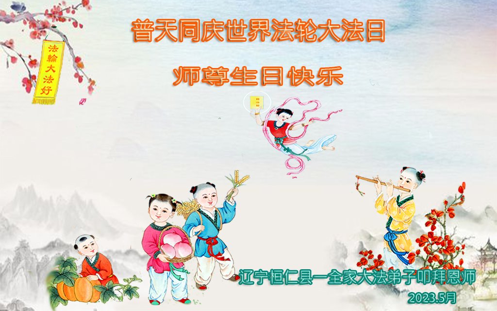 普天同庆世界法轮大法日! 恭祝师尊生日快乐! 辽宁本溪桓仁县一全家大法弟子敬贺 辽宁本溪市桓仁县一女大法弟子恭祝师尊生日快乐!