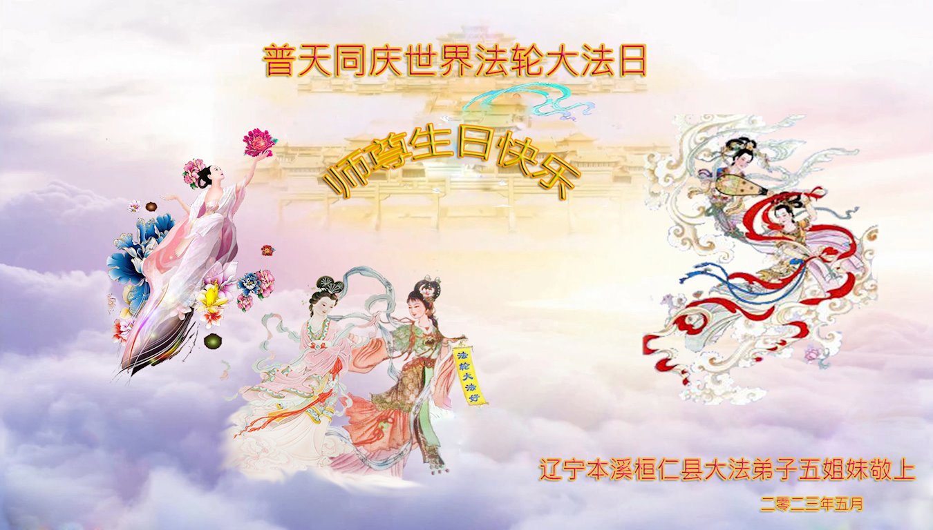 普天同庆世界法轮大法日! 恭祝师尊生日快乐! 辽宁本溪桓仁县一女大法弟子敬贺 辽宁本溪市桓仁县五姐妹大法弟子恭祝师尊生日快乐!