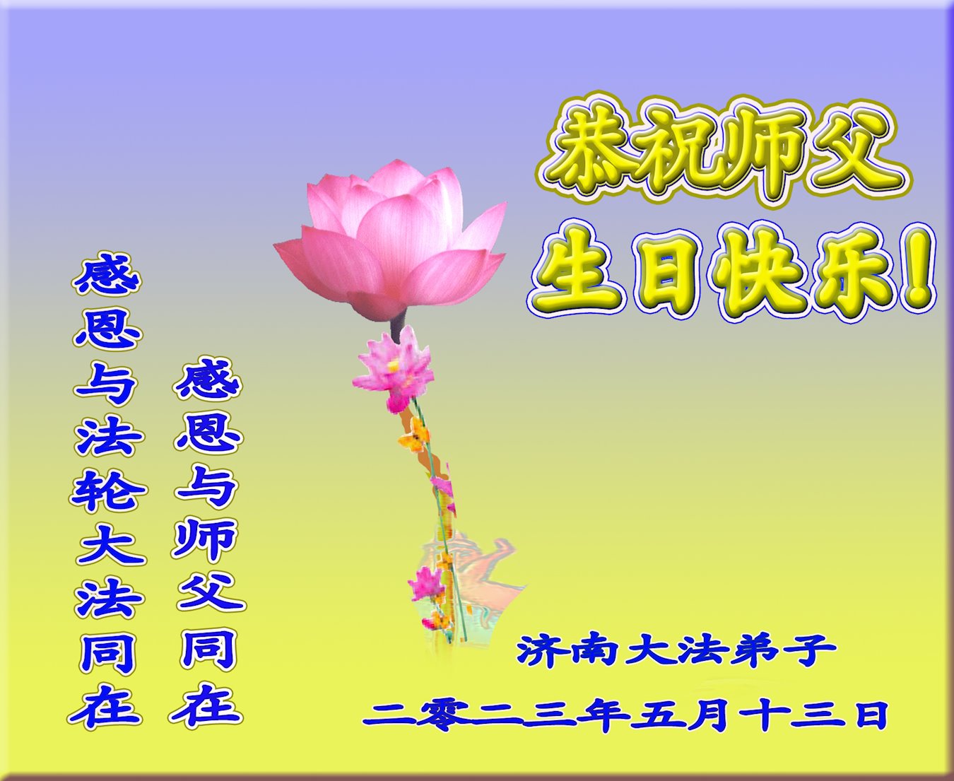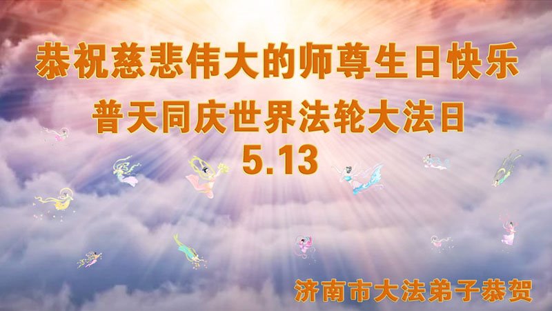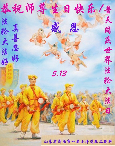 山东济南大法弟子恭祝慈悲伟大的师尊生日快乐!恭贺世界法轮大法日!