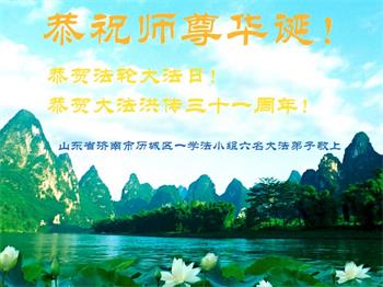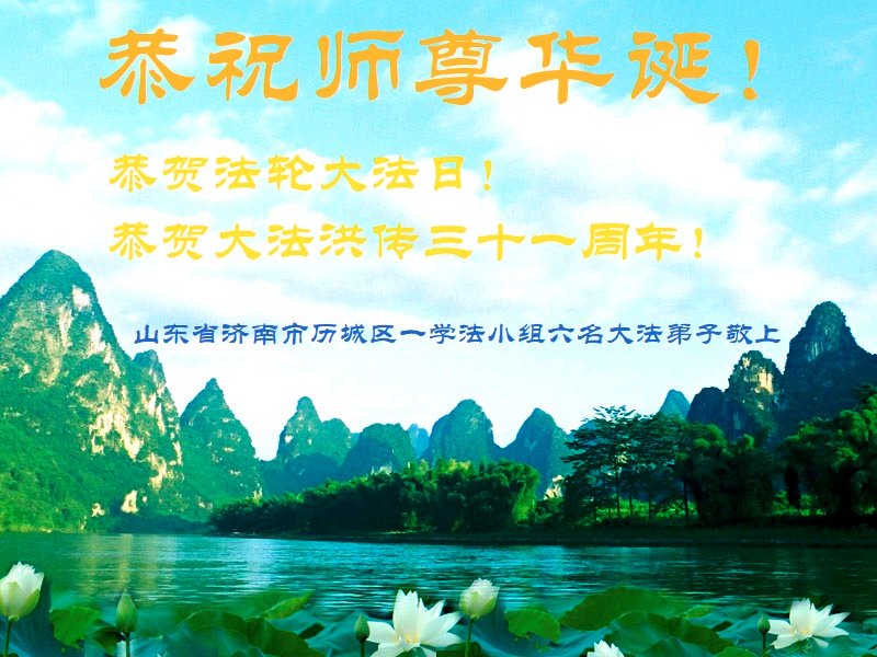 山东省济南市六位大法弟子恭祝慈悲伟大的师尊生日快乐!
