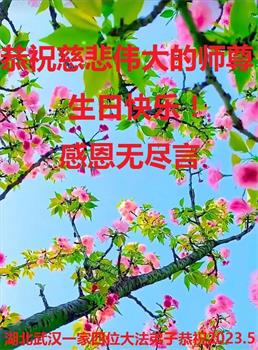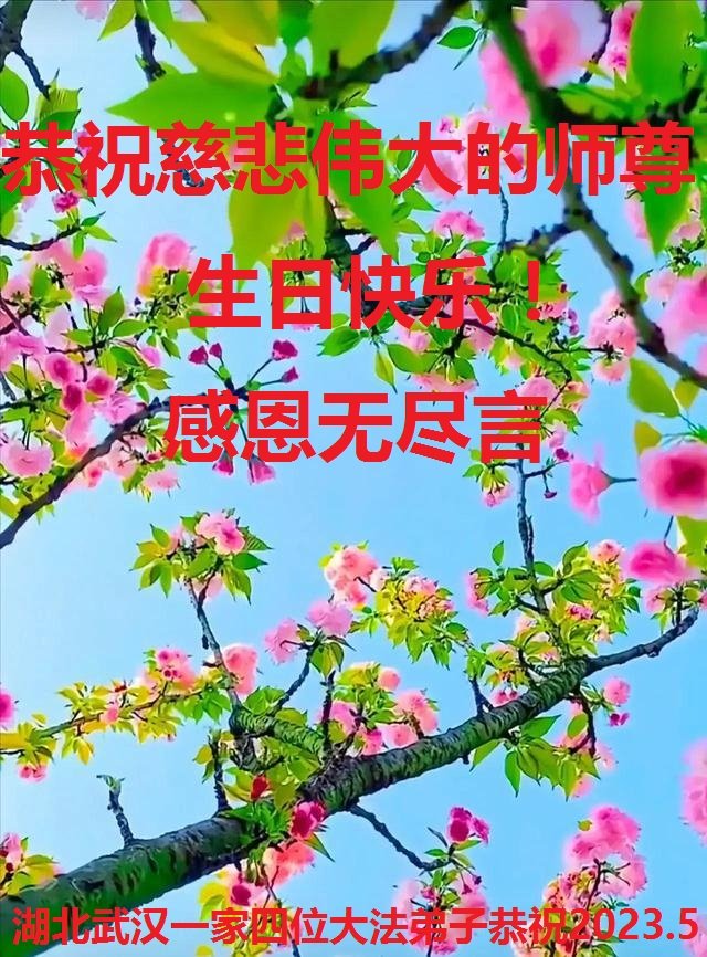 【明慧网二零二三年五月十一日】 湖北孝感城区一大法弟子及全家祝愿师父生日快乐!
