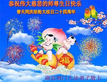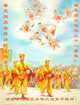湖北省黄冈市黄州区全体大法弟子恭贺伟大的师尊生日快乐!同庆世界法轮大法日!