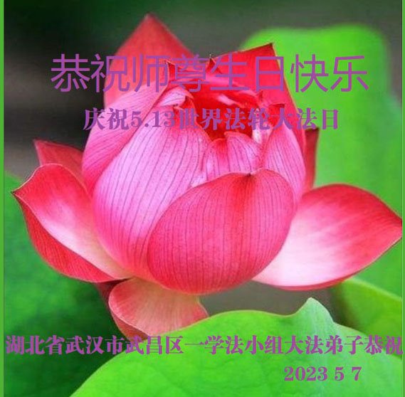 弟子无限感恩慈悲伟大师尊救度圣恩。作为正法大法弟子是弟子最大的荣幸。弟子一定精進实修,做好三件事,兑现誓约,不负圣恩,圆满随师还! 湖北省随州市大法弟子合十 叩拜 二零二三年五月三日 湖北省武汉大法弟子恭祝师父生日快乐!