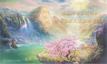 湖南岳阳市全体大法弟子恭祝师父华诞暨世界法轮大法日!