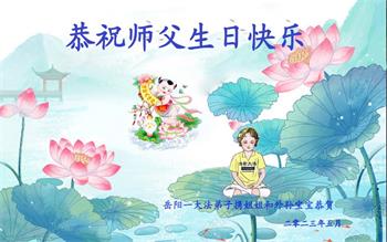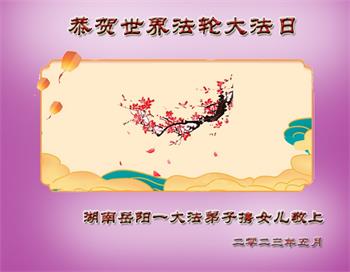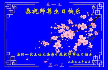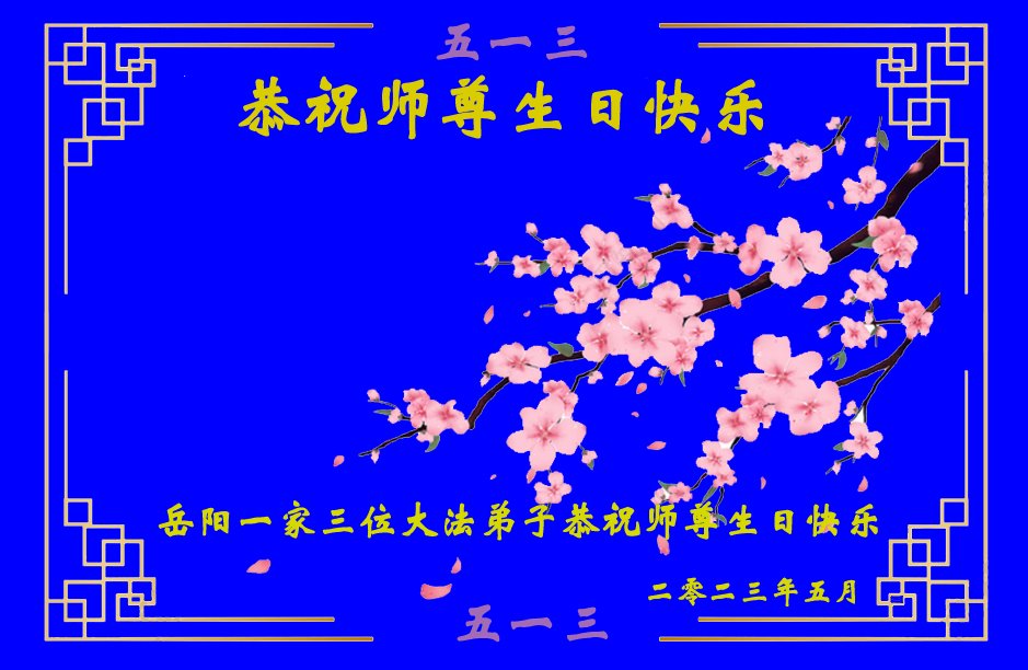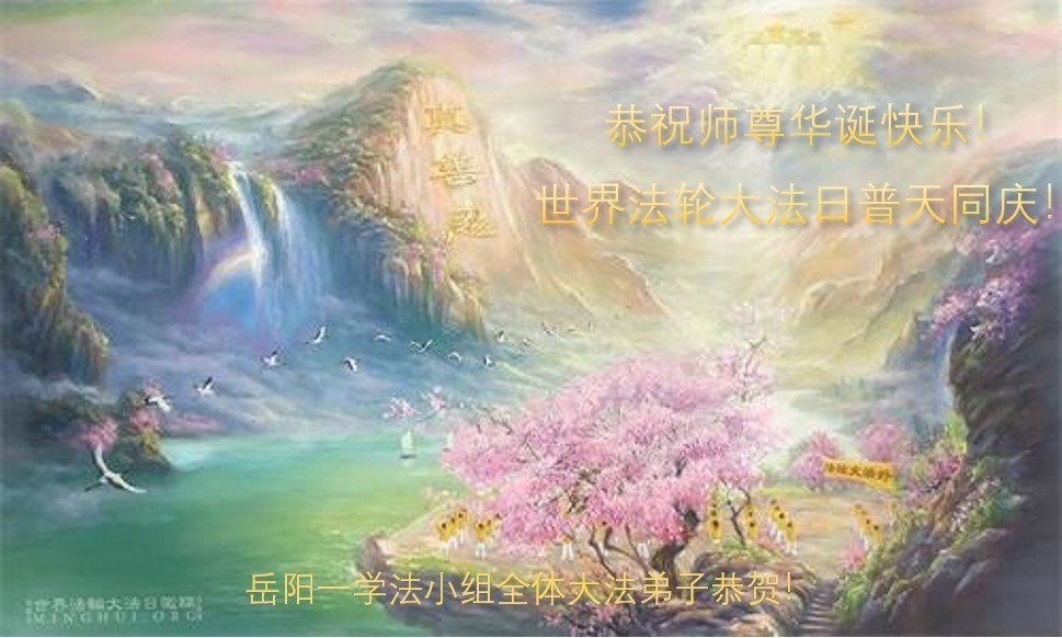 恭祝师父华诞快乐!恭贺世界法轮大法日! 法轮大法好!真善忍好! 湖南岳阳三位大法弟子恭祝师父生日快乐!