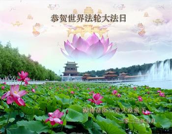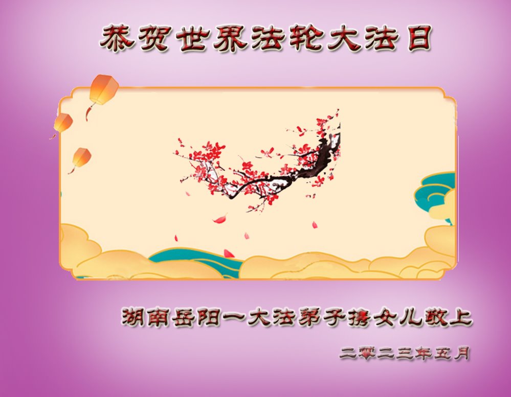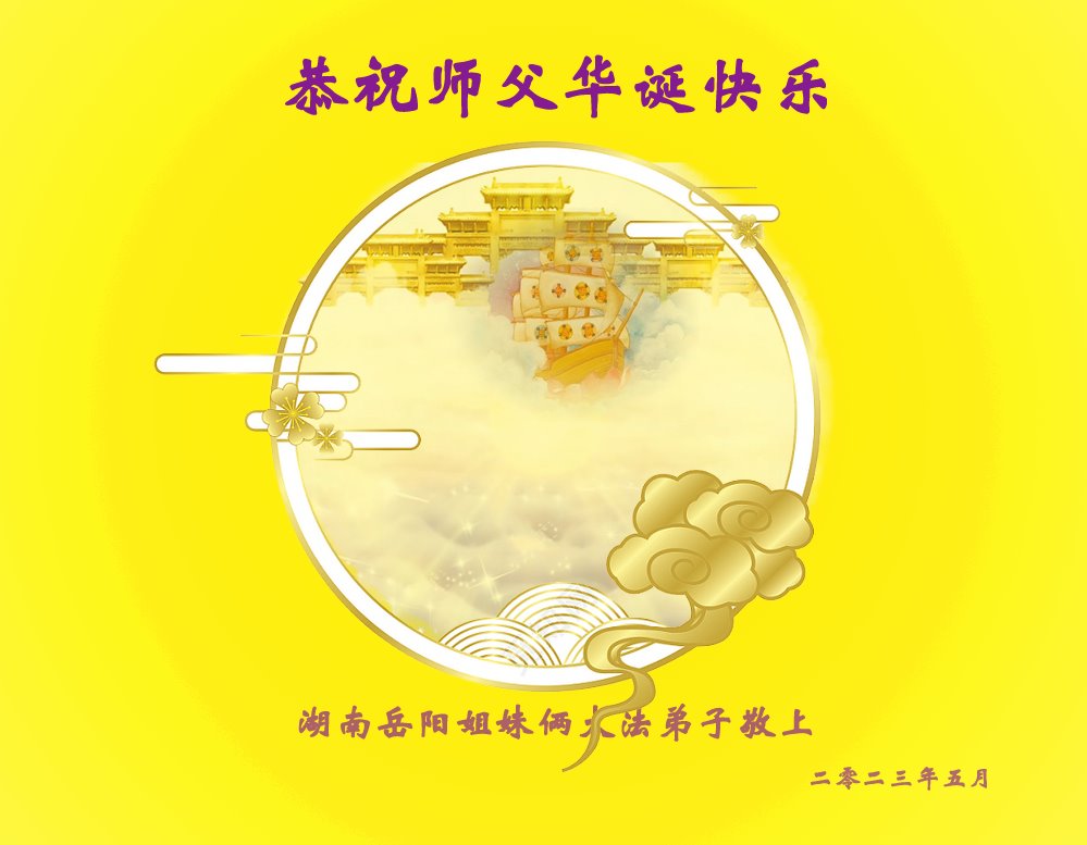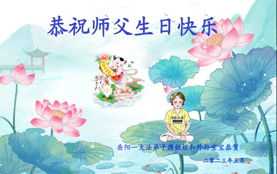 恭祝师父生日快乐! 恭贺世界法轮大法日! 感恩师父的慈悲救度! 湖南岳阳姐妹俩大法弟子恭祝师父华诞暨世界法轮大法日!