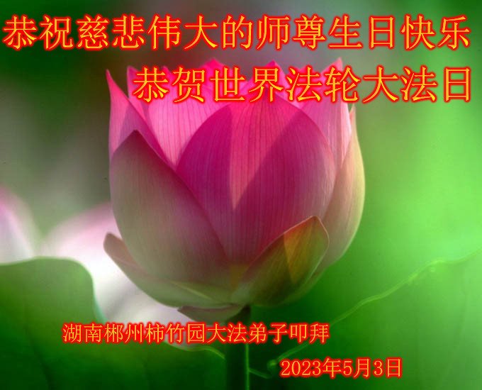 【明慧网二零二三年五月十一日】 湖南湘潭大法弟子恭祝慈悲伟大的师尊生日快乐!