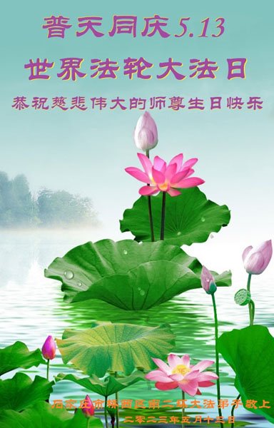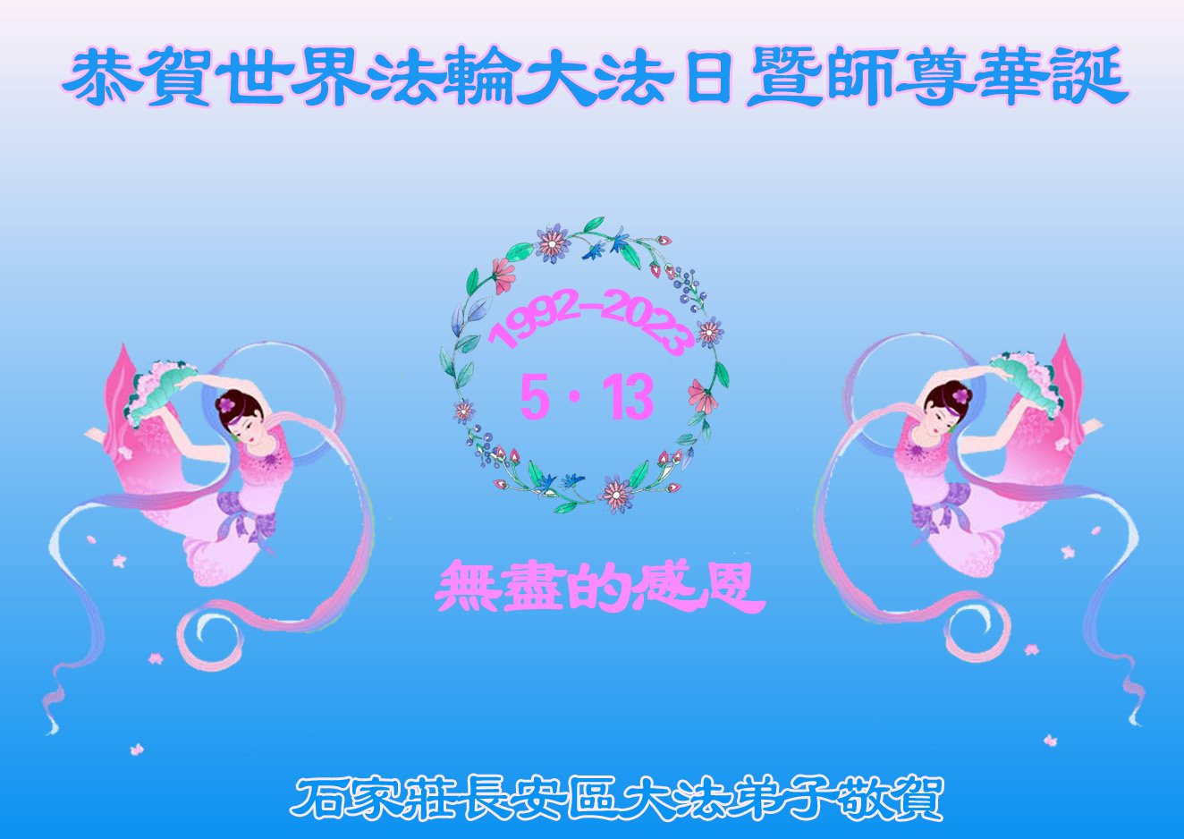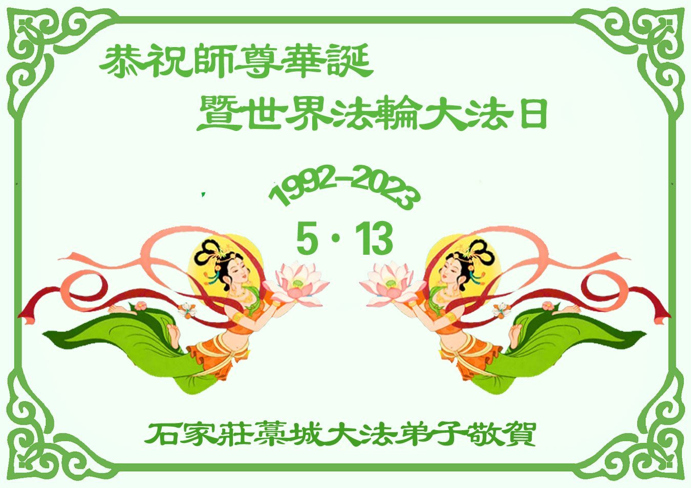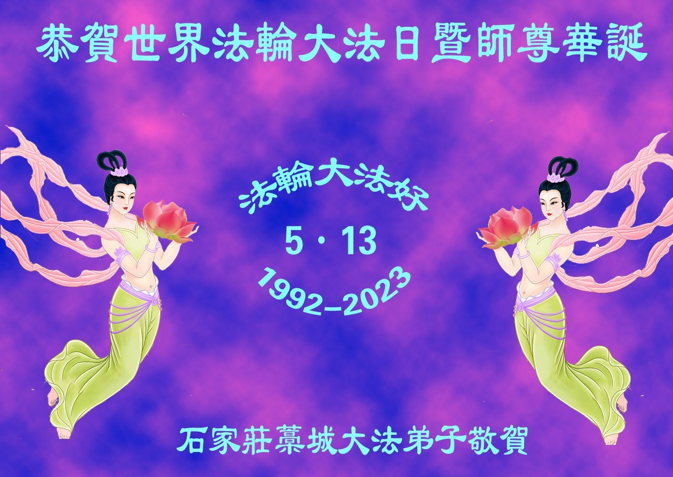 【明慧网二零二三年五月十一日】 河北石家庄市桥西区南二环大法弟子恭祝世界法轮大法日!