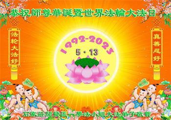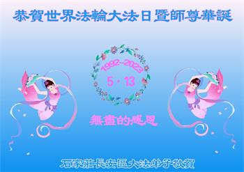 河北石家庄开发区一学法小组恭贺师尊华诞暨世界法轮大法日!