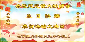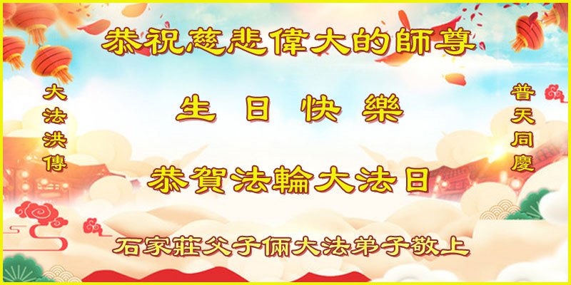 河北省石家庄市父子俩大法弟子恭祝师父生日快乐!