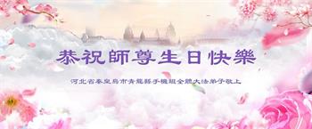 河北省秦皇岛大法弟子恭祝慈悲伟大的师尊生日快乐!