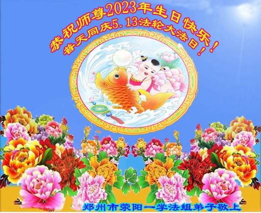 河南省郑州市荥阳市一学法小组大法弟子恭祝师尊生日快乐!普天同庆世界法轮大法日!