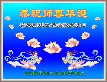 河南省郑州一大法弟子恭祝师尊华诞暨世界法轮大法日!