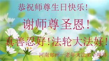 【明慧网二零二三年五月十一日】 河南省郑州市一学法小组大法弟子敬祝师尊生日快乐!