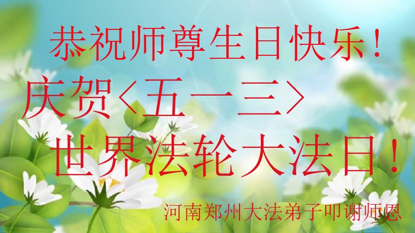 河南郑州大法弟子恭祝慈悲伟大的师尊生日快乐!恭贺法轮大法日!