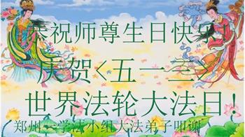 河南郑州大法弟子恭祝师尊华诞快乐!庆五∙一三世界法轮大法日!