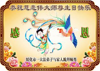 感恩师尊的慈悲苦度!弟子一定学好法,实修自己,做好三件事,跟师尊回家。 黑龙江省绥化市大法弟子恭祝师尊生日快乐暨世界法轮大法日!