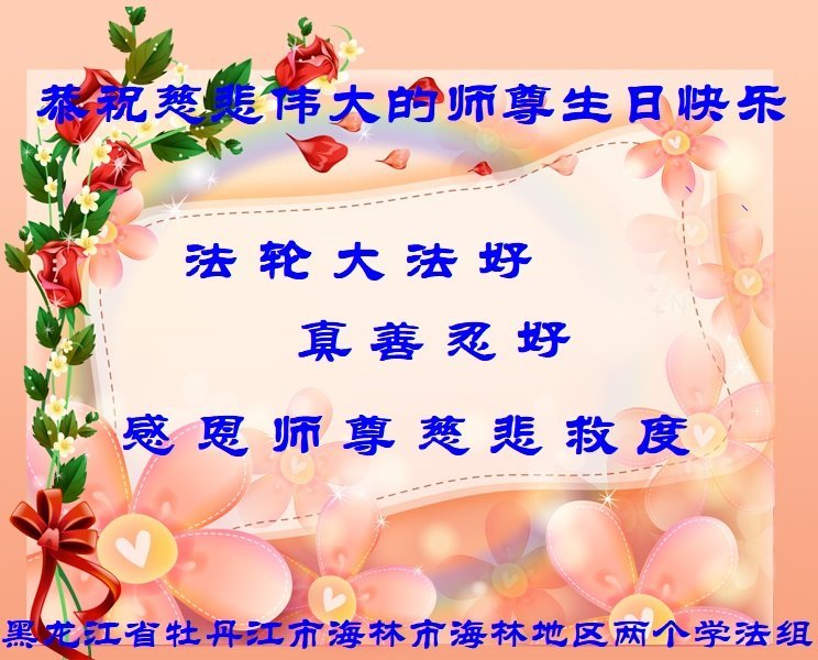 黑龙江省牡丹江市海林市海林地区学法小组大法弟子恭祝慈悲伟大的师尊生日快乐!