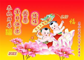 【明慧网二零二三年五月十一日】 黑龙江省绥化市安达市大法弟子恭祝师尊生日快乐!