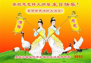 黑龙江省绥化市大法弟子恭祝慈悲伟大的师尊生日快乐!恭贺世界法轮大法日!
