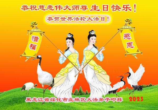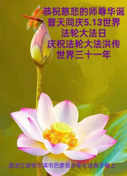 无限感恩师尊!弟子唯有精進、再精進,以报师恩。 黑龙江省绥化市北林区大法弟子恭祝师尊生日快乐暨世界法轮大法日!