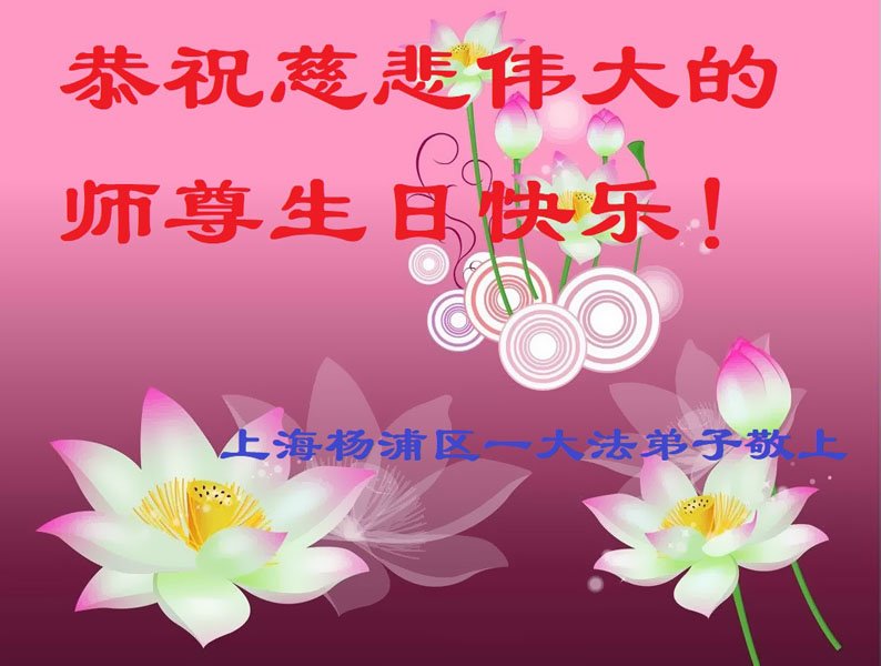 恭祝师尊生日快乐! 上海浦东新区一学法小组大法弟子敬上 上海杨浦区一大法弟子恭祝慈悲伟大的师尊生日快乐!
