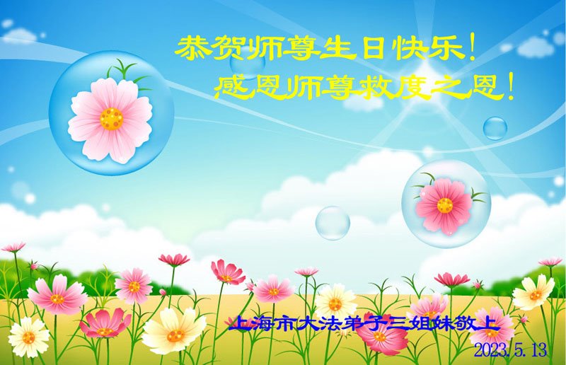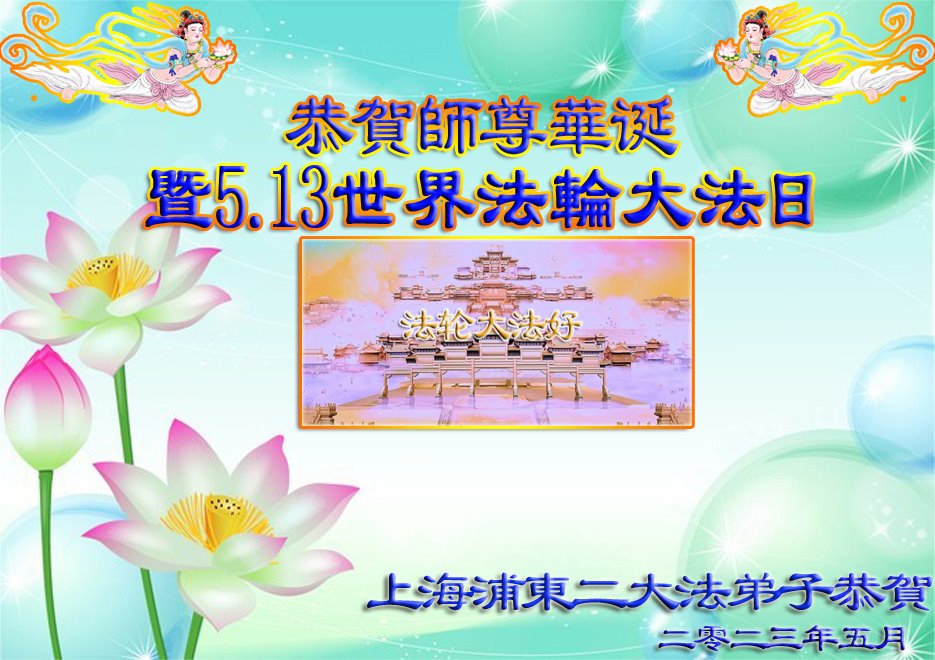 上海市大法弟子恭贺 二零二三年五月七日 上海浦东二大法弟子恭贺师尊华诞暨5.13世界法轮大法日!