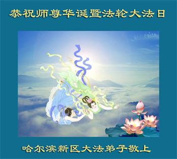 黑龙江省哈尔滨一学法小组大法弟子恭贺法轮大法日!恭祝师尊生日快乐!