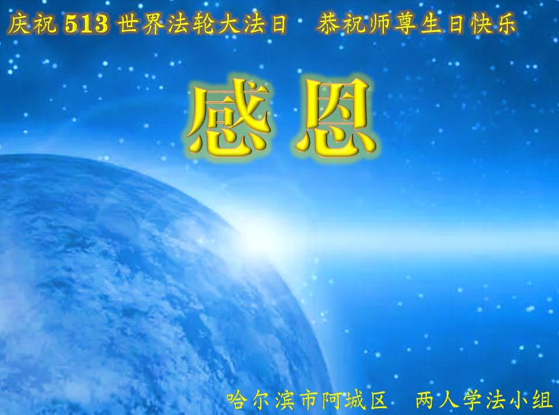 感恩师尊慈悲苦度,在今后的路上我们一定要做好三件事,学好法,严格要求自己,修心去执,多救人跟师父回家。 中国黑龙江省哈尔滨市双城市十佳全体大法弟子恭祝伟大慈悲的师尊生日快乐!普天同庆5.13世界法轮大法日!