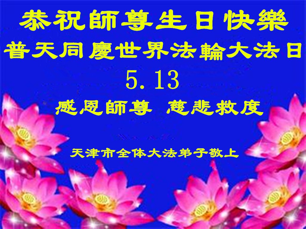 普天同庆世界法轮大法日! 恭祝师尊生日快乐! 感恩师尊慈悲救度! 天津市全体大法弟子敬上 二零二三年五月三日 天津市全体大法弟子恭祝师尊华诞!