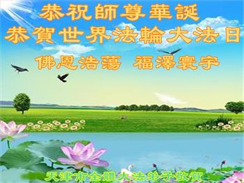恭贺世界法轮大法日! 恭祝师尊生日快乐! 佛恩浩荡普九天 光照大穹正人间 天津市一学法小组大法弟子敬贺 二零二三年五月三日 天津市全体大法弟子恭祝师尊生日快乐!