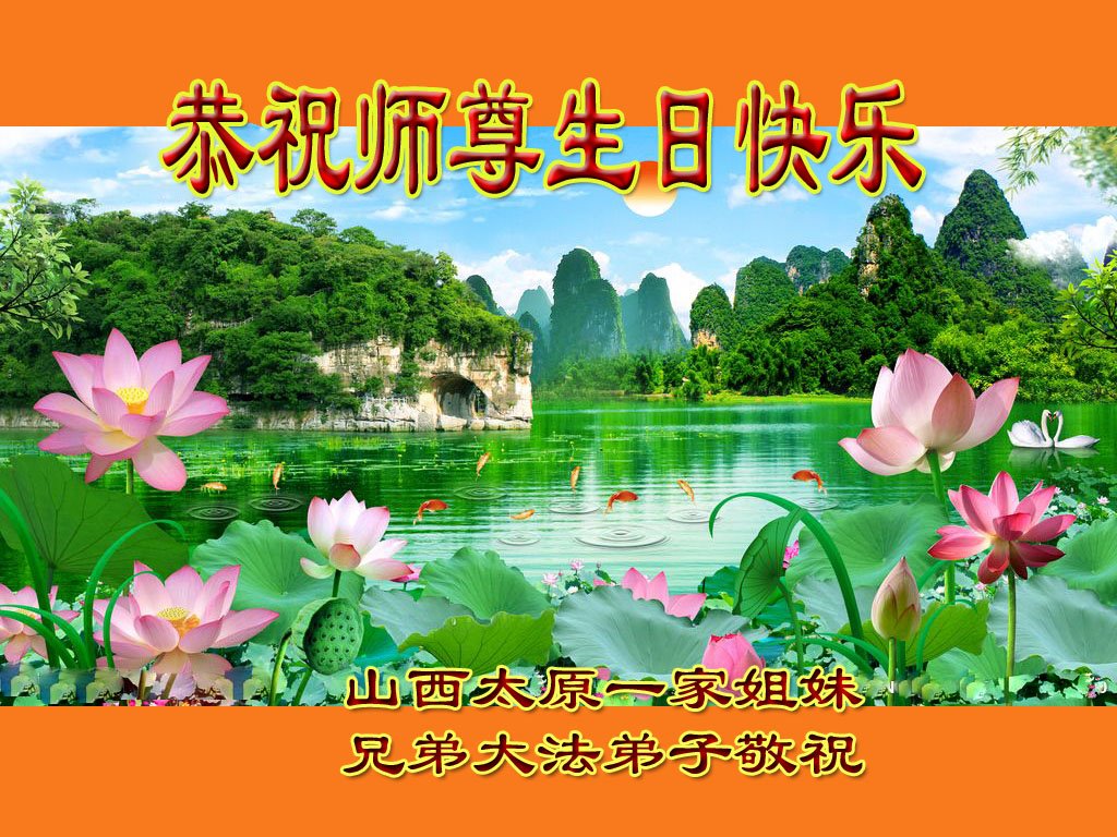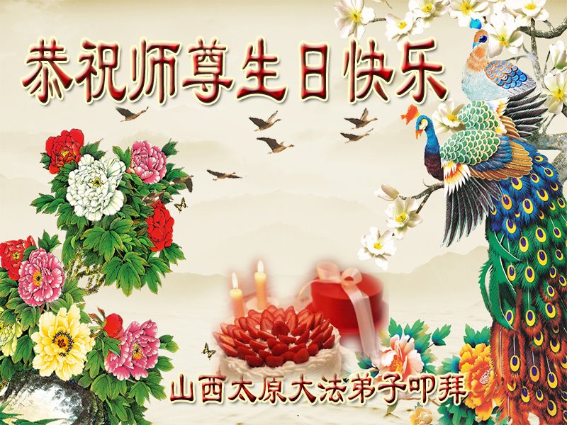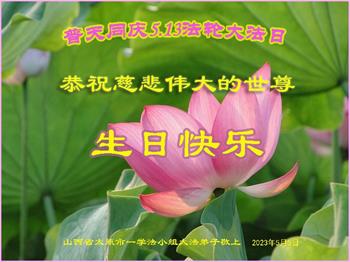 山西大法弟子恭祝慈悲伟大的师父生日快乐!