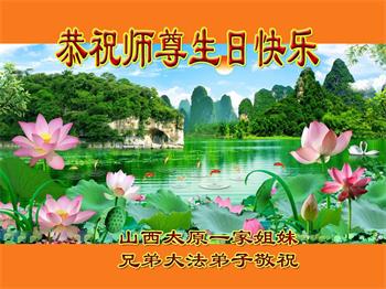 山西太原市一家大法弟子恭祝慈悲伟大的师尊生日快乐!