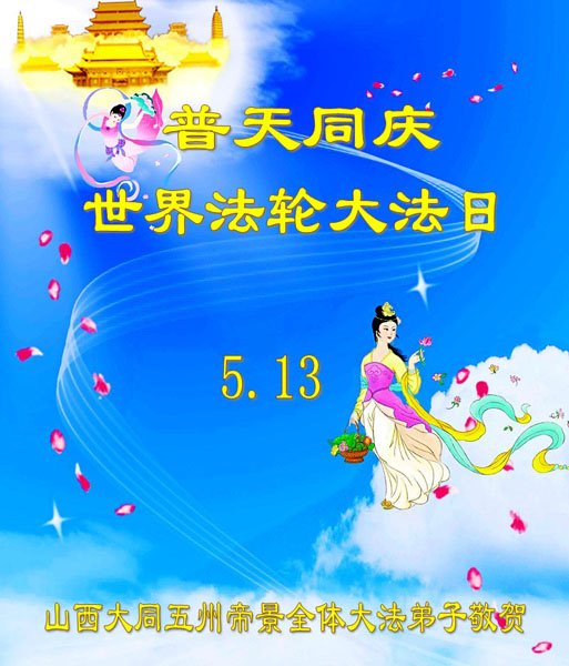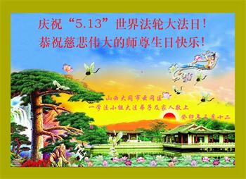 山西阳泉大法弟子恭贺五·一三世界法轮大法日!恭祝慈悲伟大的师尊生日快乐!