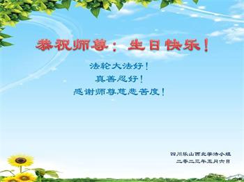 四川乐山西北学法小组大法弟子恭祝师尊生日快乐!