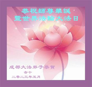 四川省成都大法弟子恭贺师尊华诞暨世界法轮大法日!