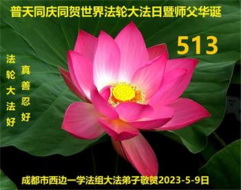 四川省成都西边一学法组大法弟子同祝世界法轮大法日暨师父华诞!