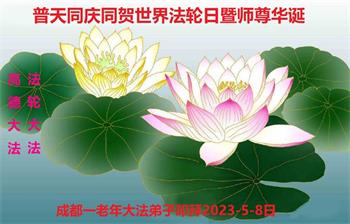 普天同庆世界法轮大法日! 四川成都市一老年大法弟子恭祝师尊生日快乐!