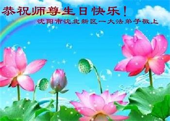 辽宁省沈阳沈北新区一大法弟子恭祝慈悲伟大的师尊生日快乐!