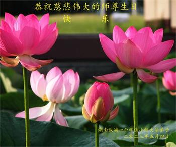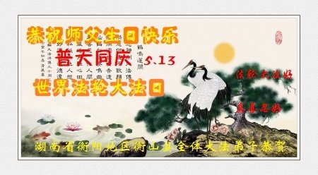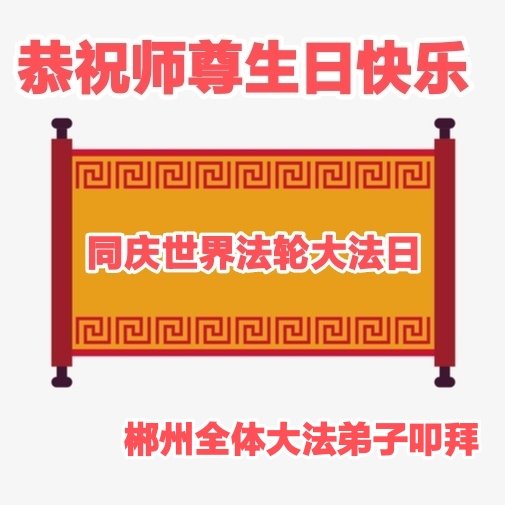 弟子们恭祝师尊生日快乐!普天同庆5.13世界法轮大法日! 弟子们感恩师尊救度众生!弟子们努力做好三件事跟师尊回家! 湖南郴州永兴全体大法弟子恭祝师尊生日快乐!